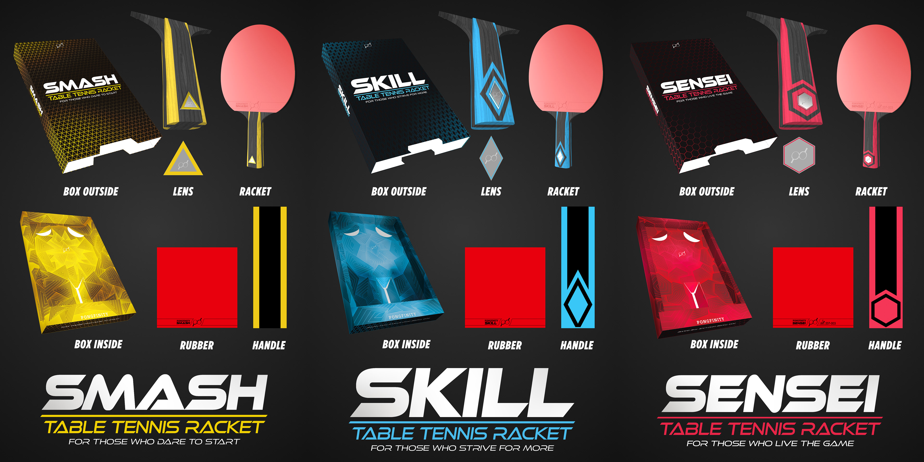 The racket line was designed to communicate level and purpose instantly, even for users outside the table tennis world.