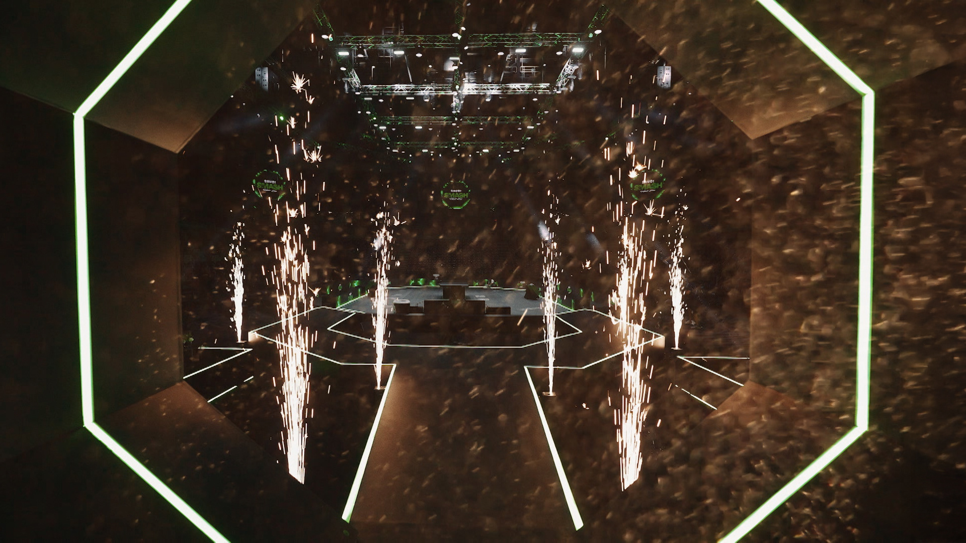 A dedicated version of the content was created for the main LED wall, while timed animations activated the full LED ecosystem, including the court perimeter LEDs. All elements were precisely synchronised to function as one connected visual system and integrated with a bespoke light show, developed in close collaboration with the event’s lighting designer and fully synced to the music track.
